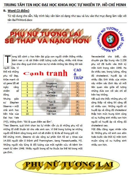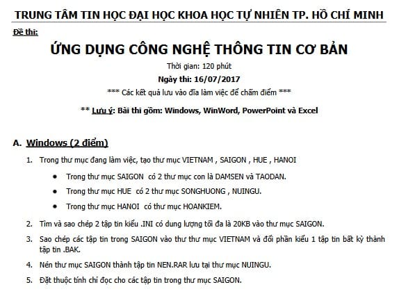 • Vì bộ Đề thi Tin học cơ bản Đại học Khoa Học Tự Nhiên được thiết kế rất sát kỹ năng thực tế: