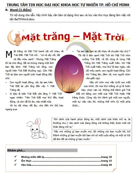 • Vì bộ Đề thi Tin học cơ bản Đại học Khoa Học Tự Nhiên được thiết kế rất sát kỹ năng thực tế: